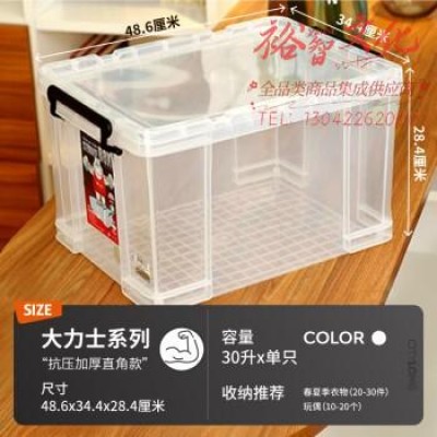 禧天龙大力士加厚直角玩具收纳箱被子衣服储物箱药箱 30升1个装透明SKU:yzwhyp879162
