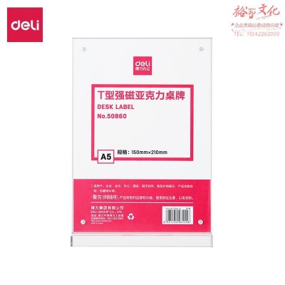 得力50860T型强磁亚克力桌牌(透明)SKU:yzwhyp879183
