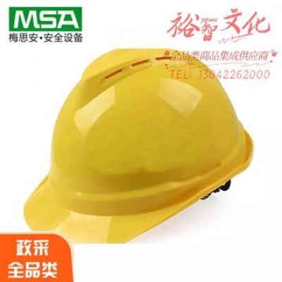 梅思安10146507V-Gard标准黄色一指键安全帽定制工地国标头盔透气SKU:yzwhyp879187
