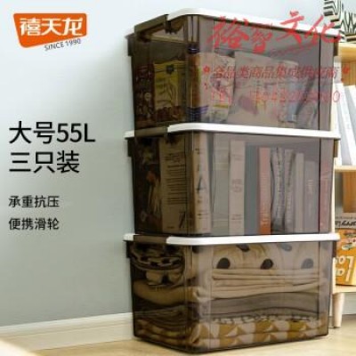 禧天龙 被子衣服收纳箱大号 儿童玩具整理箱 文件书籍储物箱 抗压搬家打包箱 透明灰带轮 55升3个装SKU:yzwhyp879210