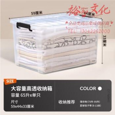 禧天龙衣物被子收纳箱儿童玩具整理箱文件书籍储物箱透明 65升 1个装SKU:yzwhyp879218