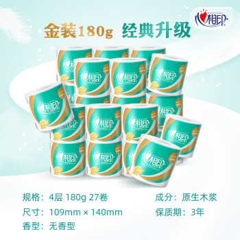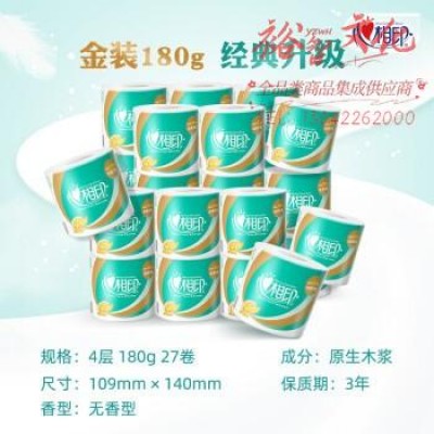 心相印卷纸【肖战推荐】心柔 4层180g27卷卫生纸巾(大克重 整箱销售)SKU:yzwhyp879252