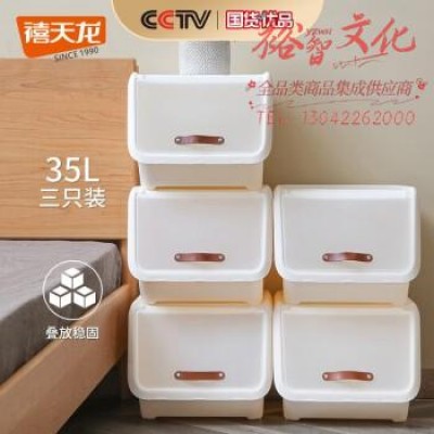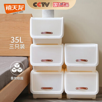 禧天龙河马口前开盖收纳箱衣物玩具整理箱零食储物箱药箱 奶白35升3个装SKU:yzwhyp879262