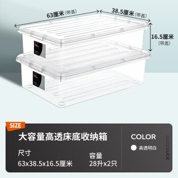 禧仕多床底收纳箱大号 28升2个装 玩具整理箱 衣服储物箱 透明搬家箱子SKU:yzwhyp879313