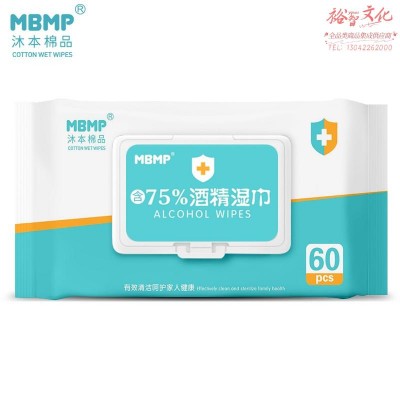 沐本棉品 75%酒精湿巾 便携式杀菌消毒湿巾纸巾 60片/包SKU:yzwhyp879390