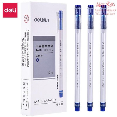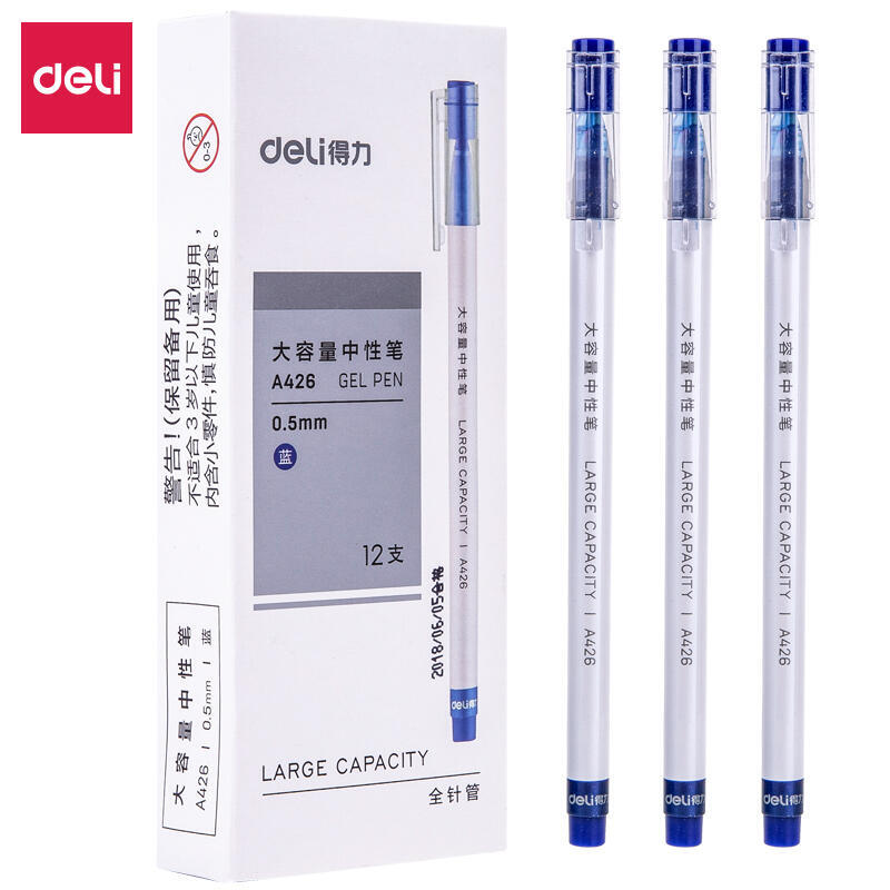 得力A426学生中性笔0.5mm全针管(蓝)12支/盒SKU:yzwhyp879433