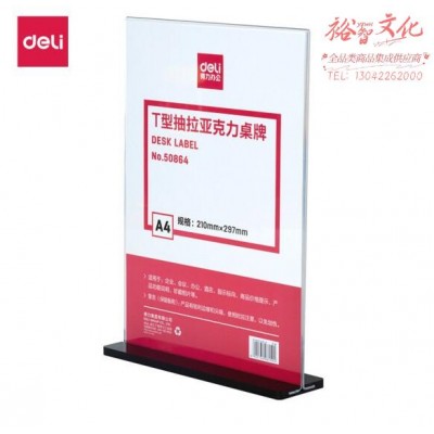 得力50864T型抽拉亚克力桌牌(透明)SKU:yzwhyp879474