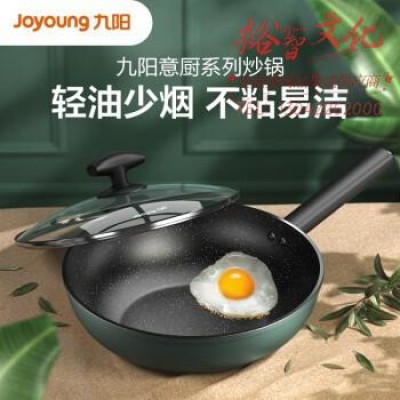 九阳(Joyoung)炒锅 麦饭石色 不粘锅加大平底煎锅家用炒菜锅30cm燃气电磁炉通用SKU:yzwhyp879518