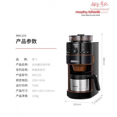 摩飞电器(Morphyrichards)MR1103咖啡机全自动磨豆家用咖啡机不锈钢保温咖啡壶 豆粉两用SKU:yzwhyp879609