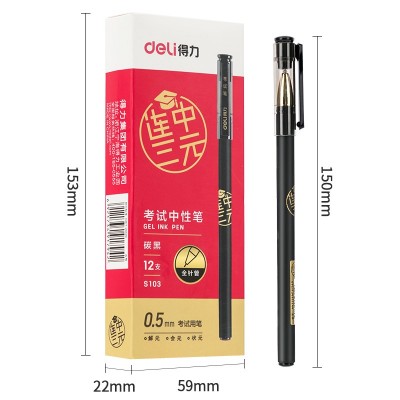 得力/deliS103 考试中性笔 黑 0.5mm全针管12支/盒