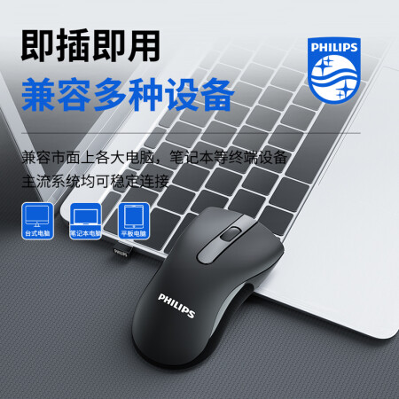 飞利浦(PHILIPS)SPK7211 鼠标 无线鼠标 办公鼠标无线 人体工学 细纹磨砂 黑色SKU:yzwhyp879972