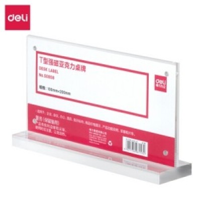 得力(deli)50858 T型强磁吸附亚克力桌牌 单面透明 10x20cm