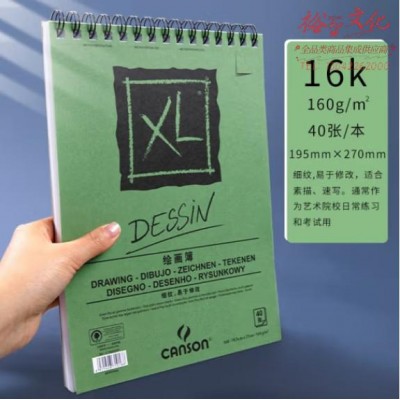 康颂(CANSON) 法国康颂XL细纹素描本水彩纸水彩本美术绘画素描纸本 素描本绿面16K195270mm160g细纹SKU:yzwhyp880203