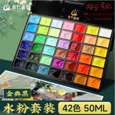 青竹画材 CHINJOO金典黑水粉42色50ml颜料套装学生艺考联考艺术创作画室名师推荐色彩课水粉画颜料SKU:yzwhyp880217