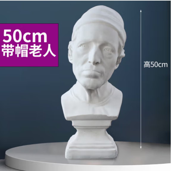 石膏像大卫石膏像美术教具石膏头像画室常用石膏雕塑石膏头像模型 带帽老人50cmSKU:yzwhyp880239