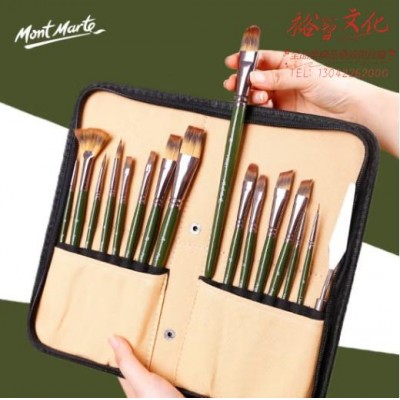 蒙玛特(Mont Marte)油画笔套装 水粉笔油画丙烯水彩勾线笔刮刀 3色尼龙画笔套装(绿色包)SKU:yzwhyp880261