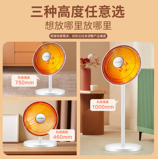 康佳(KONKA)取暖器家用小太阳电暖器取暖电暖气落地远程500W1000W烤火炉速热台式落地三阶段两档位可摇头SKU:yzwhyp880354