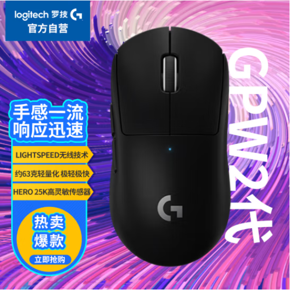 罗技(G)PRO X SUPERLIGHT无线游戏鼠标 GPW2狗屁王二代 轻量化63g电竞鼠标 吃鸡英雄联盟 黑色SKU:yzwhyp880454