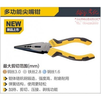 6寸多功能尖嘴钳铬钒钢(黄)(1/6/72)得力SKU:yzwhyp880570