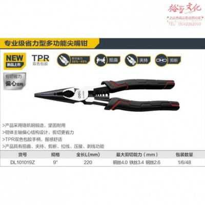 9寸多功能尖嘴钳省力型高寿命铬钒钢带剥线(红)(1/6/48)得力SKU:yzwhyp880573