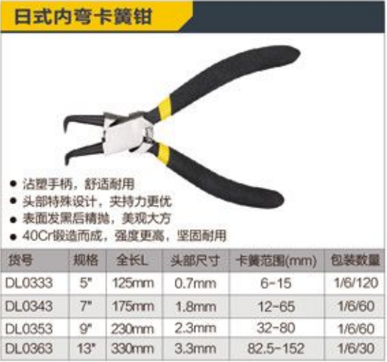 5寸日式内弯卡簧钳铬钒钢(红)(1/6/120)得力 钳子SKU:yzwhyp880608