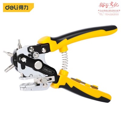 7寸打孔钳冲压式省力型6圆孔(黄)(把)(1/6/48)得力 钳子SKU:yzwhyp880686
