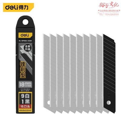 18mm锋利型美工刀片厚0.5_2400片(9白1黑)(1/-/1)(2400片/箱)得力SKU:yzwhyp880797