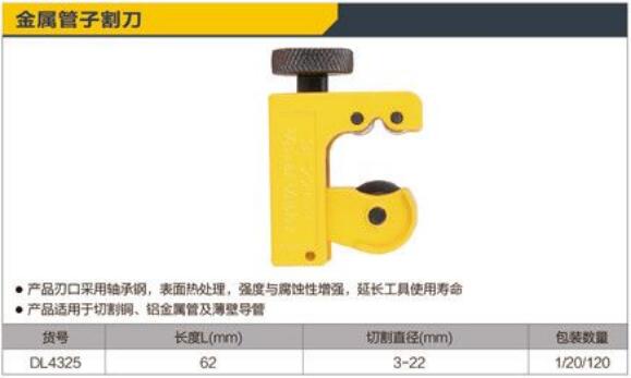 3-22mm金属管子割刀(黄)(1/20/120)得力SKU:yzwhyp880806