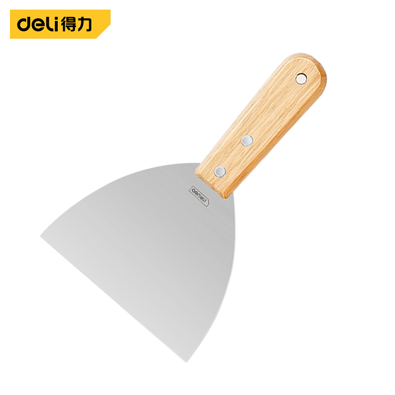 5寸木柄油灰刀(银)(1/12/240)得力SKU:yzwhyp880820