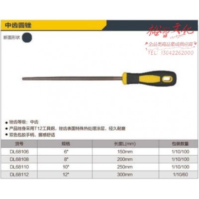 12寸中齿圆锉(黄)(1/10/60)得力SKU:yzwhyp880853