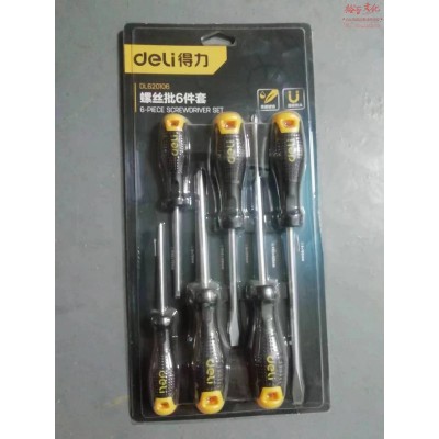 6件套塑柄螺丝批6件套(黄)(1/12/48)得力 螺丝刀SKU:yzwhyp880870