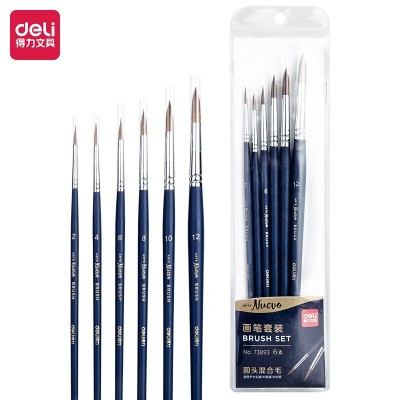 得力73893_圆头混合毛画笔6支套装(蓝色)(6支/袋)(2#/4#/6#/8#/10#/12#)水粉画水彩画颜料画画笔 圆头国画美术画笔套装
