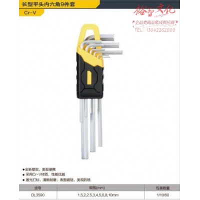 首页 > 建筑建材 > 手动工具 > 9件套加长平头内六角组套(黄)(1/10/60)得力SKU:yzwhyp881012