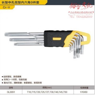 9件套加长花型内六角组套(黄)(1/10/60)得力SKU:yzwhyp881013