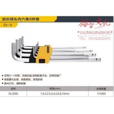 9件套特长球头内六角组套塑架(黄)(1/10/60)得力SKU:yzwhyp881016