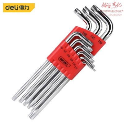 9件套工业级镜面加长花型内六角组套S2(红)(1/10/40)得力SKU:yzwhyp881028