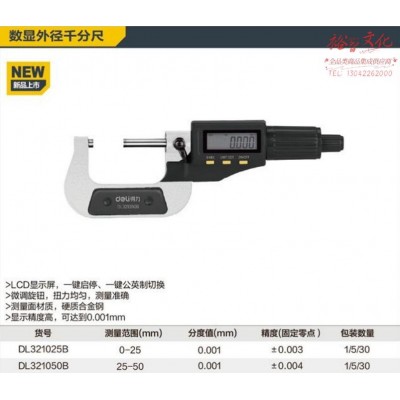 25-50mm数显外径千分尺(黄)(1/1/5/30)得力SKU:yzwhyp881080