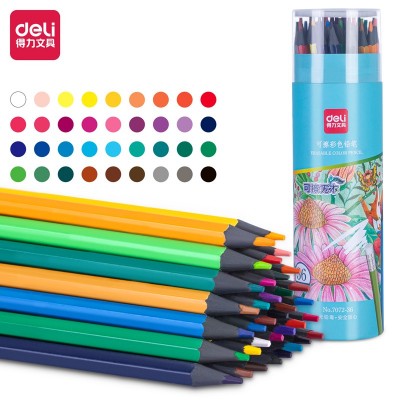 得力7072-36_36色六角杆可擦彩铅(混)(36色/筒)
