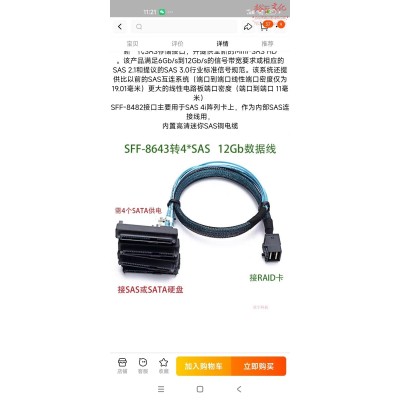 首页 > 信息化设备 > 数据线 > 全新12Gb/S SFF-8643转8482(4SAS) 一分四raid硬盘数据线 蓝色50CM 一托四SASSKU:yzwhyp881316