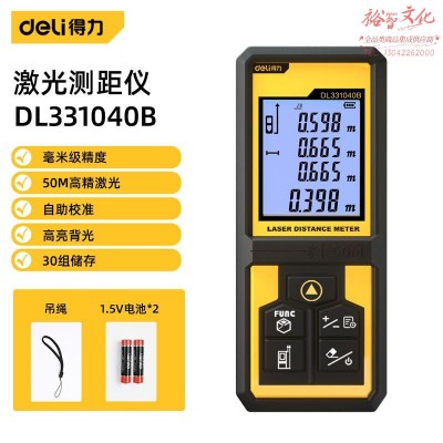50m激光测距仪(黄)(1/1/5/50)得力SKU:yzwhyp881409