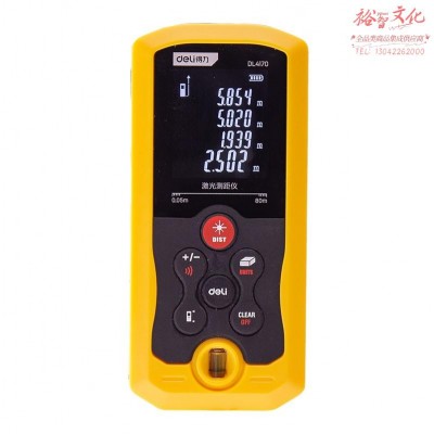 80m激光测距仪(黄)(1/1/5/50)得力SKU:yzwhyp881412