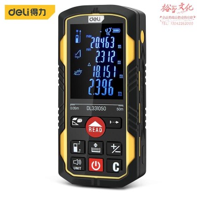 50m激光测距仪大屏语音锂电(黄)(1/1/5/50)得力SKU:yzwhyp881418