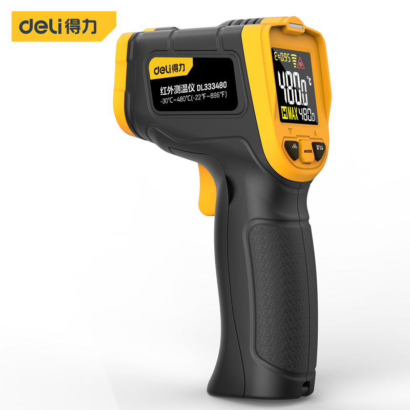 -30℃-480℃红外测温仪彩屏(黄)(1/1/5/60)得力SKU:yzwhyp881483