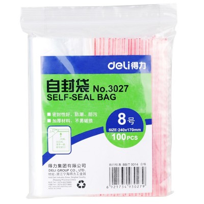 得力3027自封袋(透明)-8号(100个/包)240x170mm0.04mm