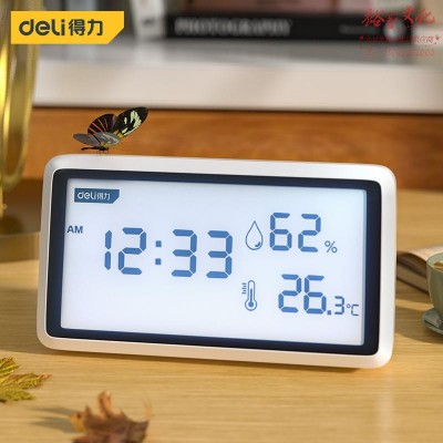 闹钟、背光、日期温湿度计闹钟(白)(1/1/12/96)得力SKU:yzwhyp881512
