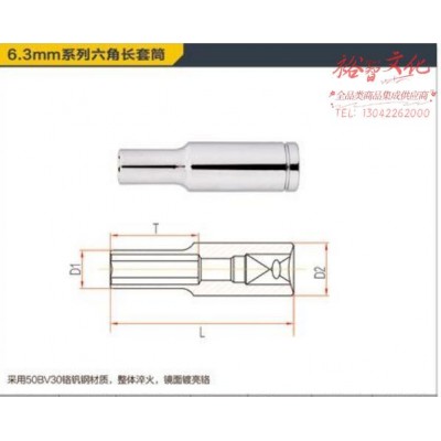 13mm6.3mm系列六角长套筒(银)(1/24/360)得力SKU:yzwhyp881907