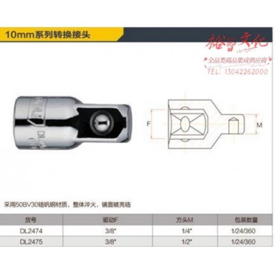 3/8转1/2 10mm系列转接头(银)(1/24/360)得力 DL2475SKU:yzwhyp881948