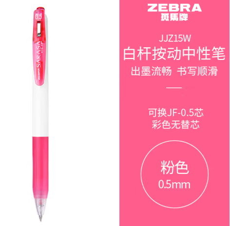 首页 > 办公用品 > 文具 > 斑马牌(ZEBRA)学霸系列中性笔 0.5mm子弹头按动签字笔 彩色学生笔记标注填色手账笔 JJZ15W 粉色 单支装 (zhyghf_23099005)SKU:yzwhyp882210