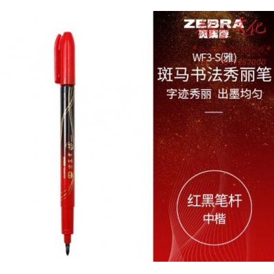 斑马牌(ZEBRA)中楷秀丽笔 学生毛笔练字笔 书法笔请柬笔 WF3-S 红黑笔杆 单支装 (zhyghf_23099038)SKU:yzwhyp882235