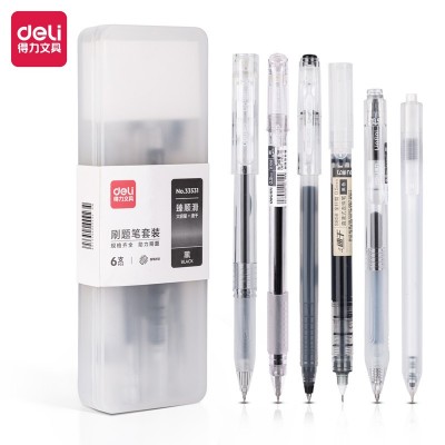 得力33531学生刷题笔套装(5支中性笔+1支直液笔)(黑)(盒)